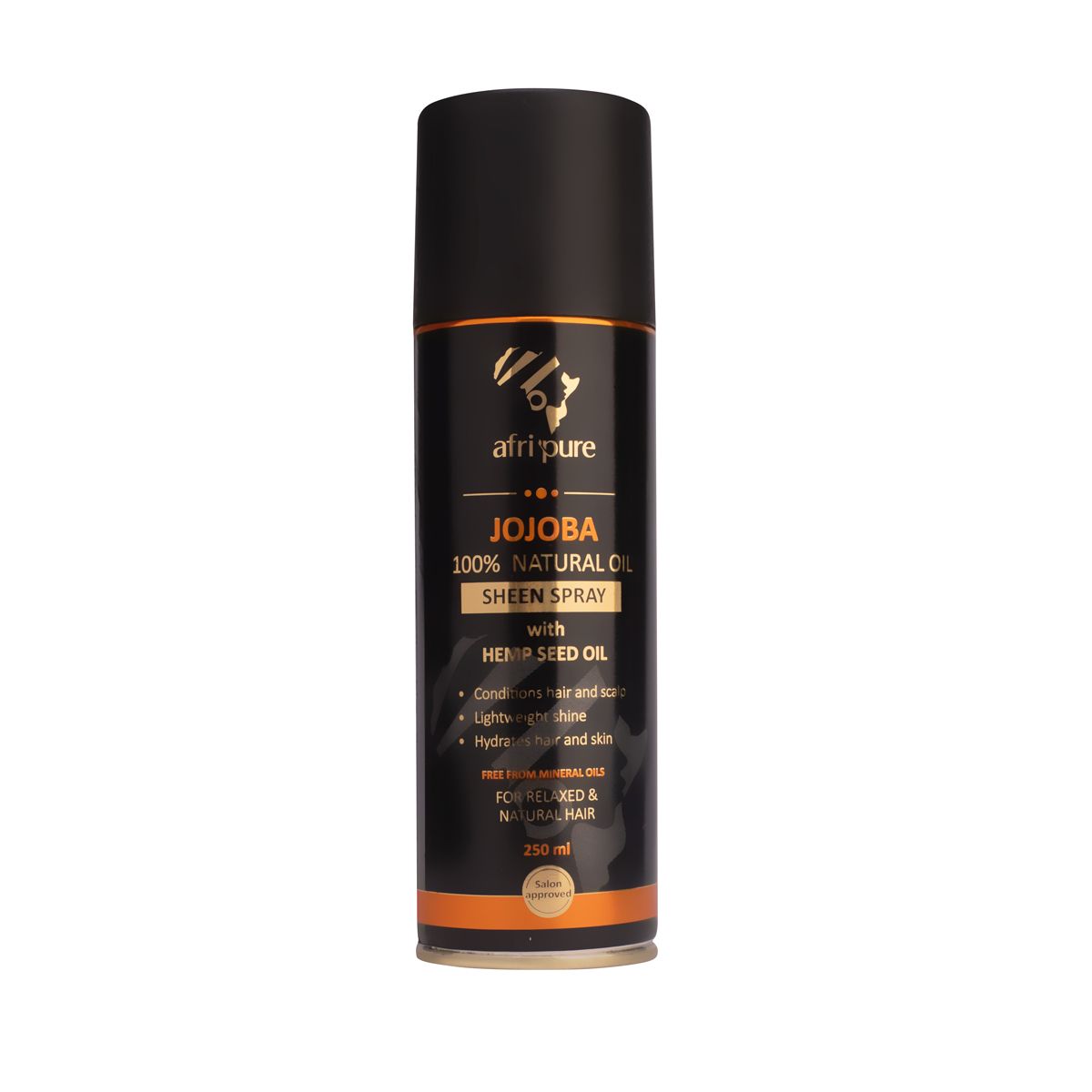 Afri Pure Oil Sheen Spray Jojoba 250ml conditions the hair and scalp, hydrates hair and skin and provides a lightweight shine. This oil sheen spray is suitable for both relaxed and natural hair.