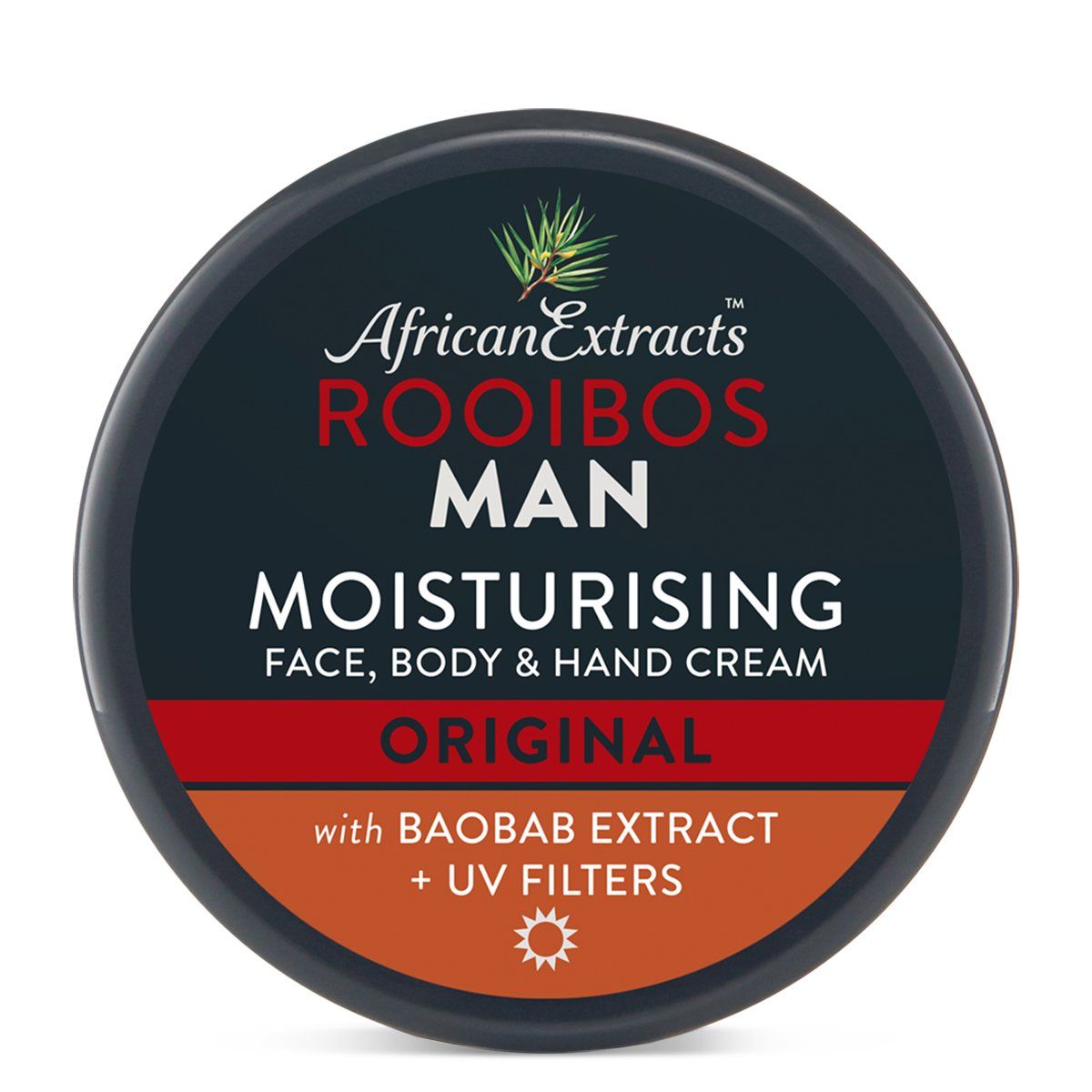 You enjoy living life to the max, but your skin doesn’t. Restore condition to hard-working skin with new Rooibos Man Multi-purpose Moisturising Cream that you can use on your face, hands and body. With Bio-Active Rooibos, soothing Baobab extract, sun filters and a classic spicy fragrance.