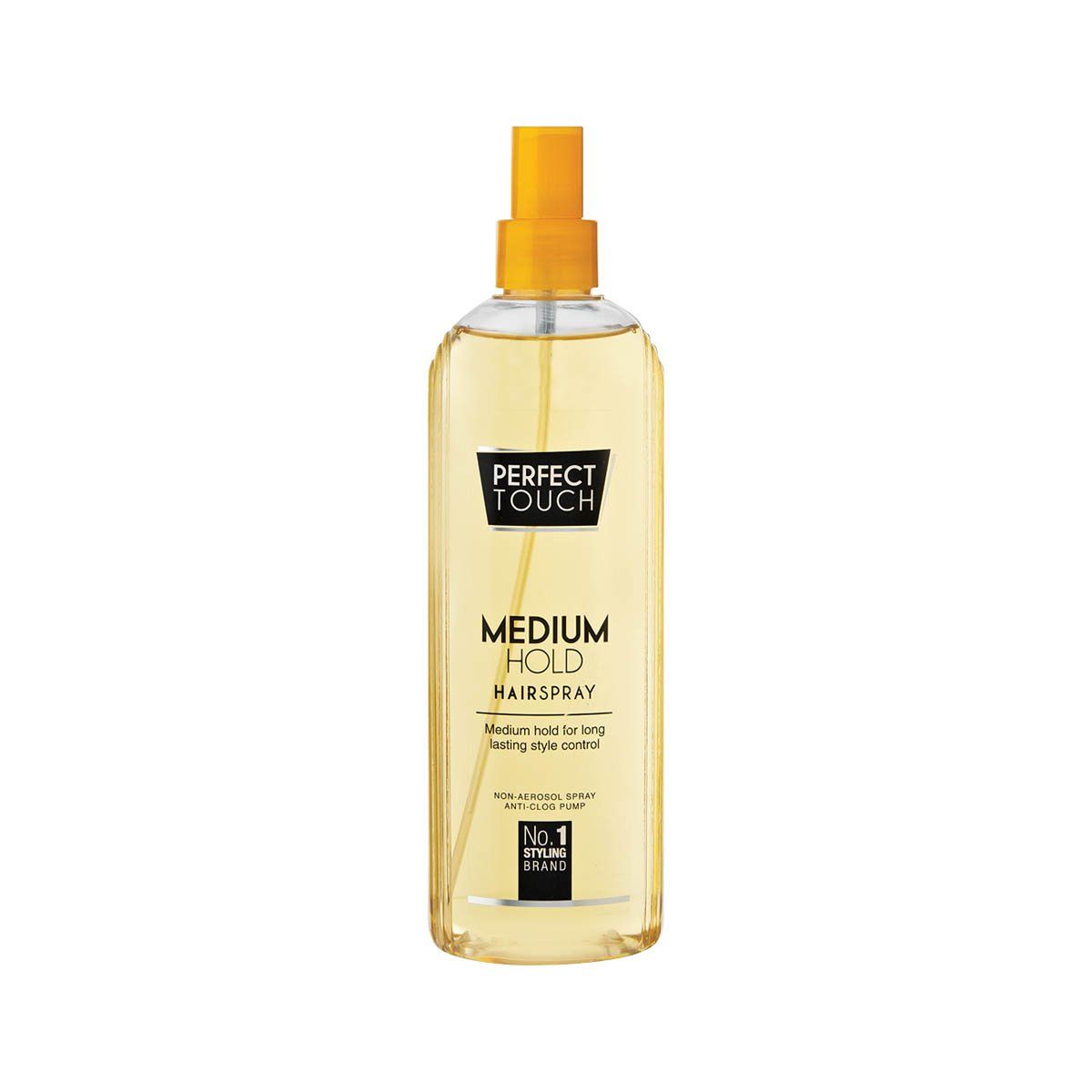 Perfect Touch Hairspray Medium Hold 350ml gives you long lasting control with a flexible hold. Its special formulation contains UV filters to protect hair against sun damage, and is not sticky or flaky. Brushes and washes out easily.