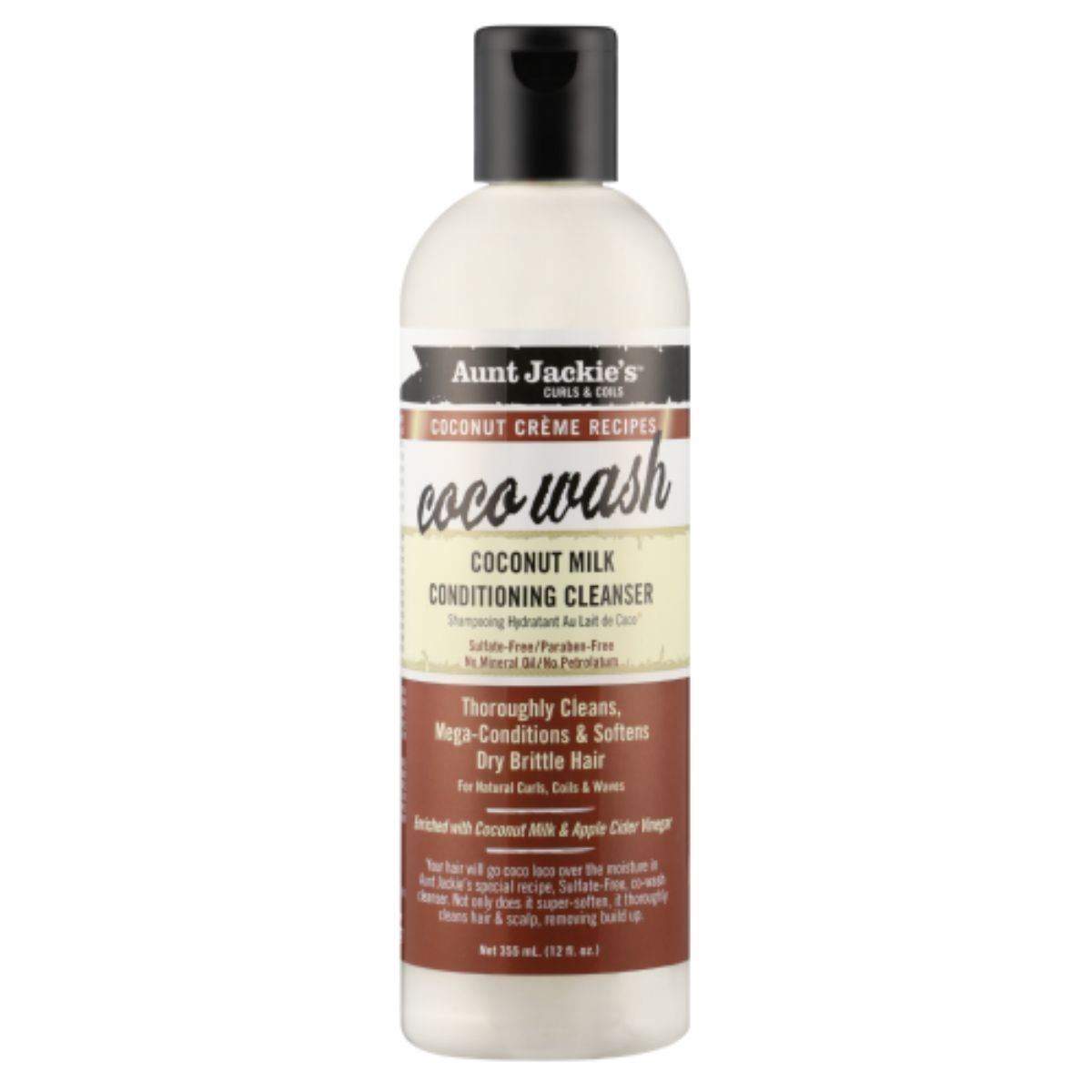 Aunty jackie's coconut milk conditioning hair cleanser is specially formulated for natural curls coils and waves. It is available in a pack size of 355ml bottle. It thoroughly cleanses, mega-conditions and softens dry brittle hair. It is infused with coconut milk and apple cider vinegar. Your hair will go coco loco on moisture in aunt jackie's sulfate free co-wash cleanser. It removes excessive buildup from hair and scalp.