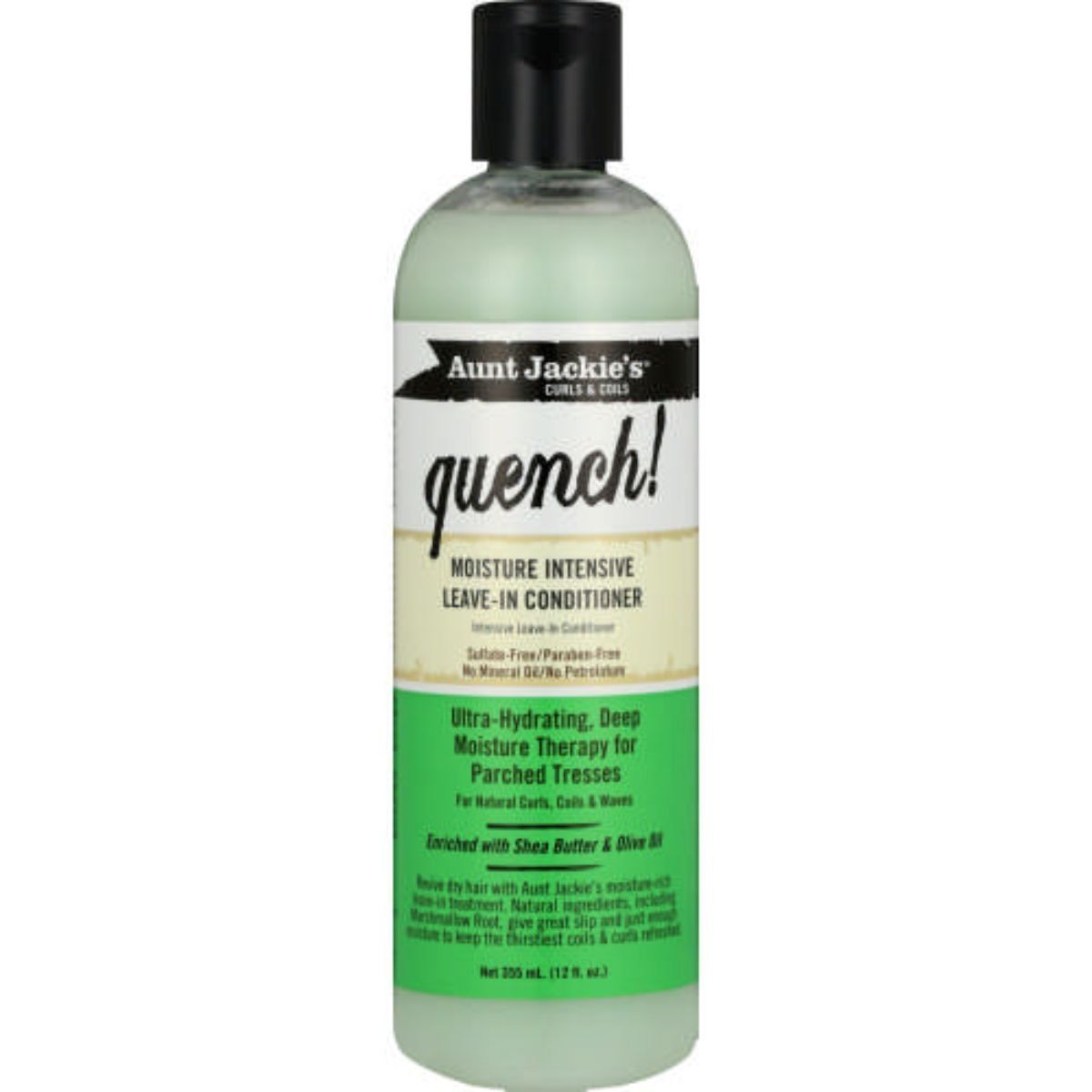 Aunt jackie’s quench moisture intensive leave-in conditioner comes enriched with shea butter and olive oil. This leave in conditioner is ultra hydrating and also provides deep moisture therapy for dry or damaged hair, with a rich formula of shea butter and olive oil. Aunt jackie’s leave in conditioner is ideal for natural curls, coils & waves. It is paraben free and sulfate free.