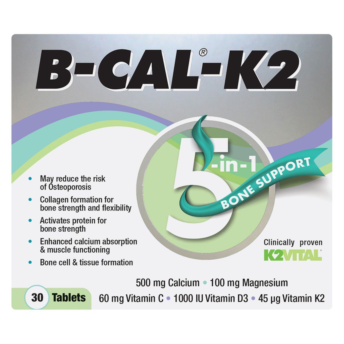 B-CAL K2 Tablets 30 Tablets is a 5-in-1 bone support that can help to reduce the risk of Osteoporosis and helps to activates protein for bone strength.