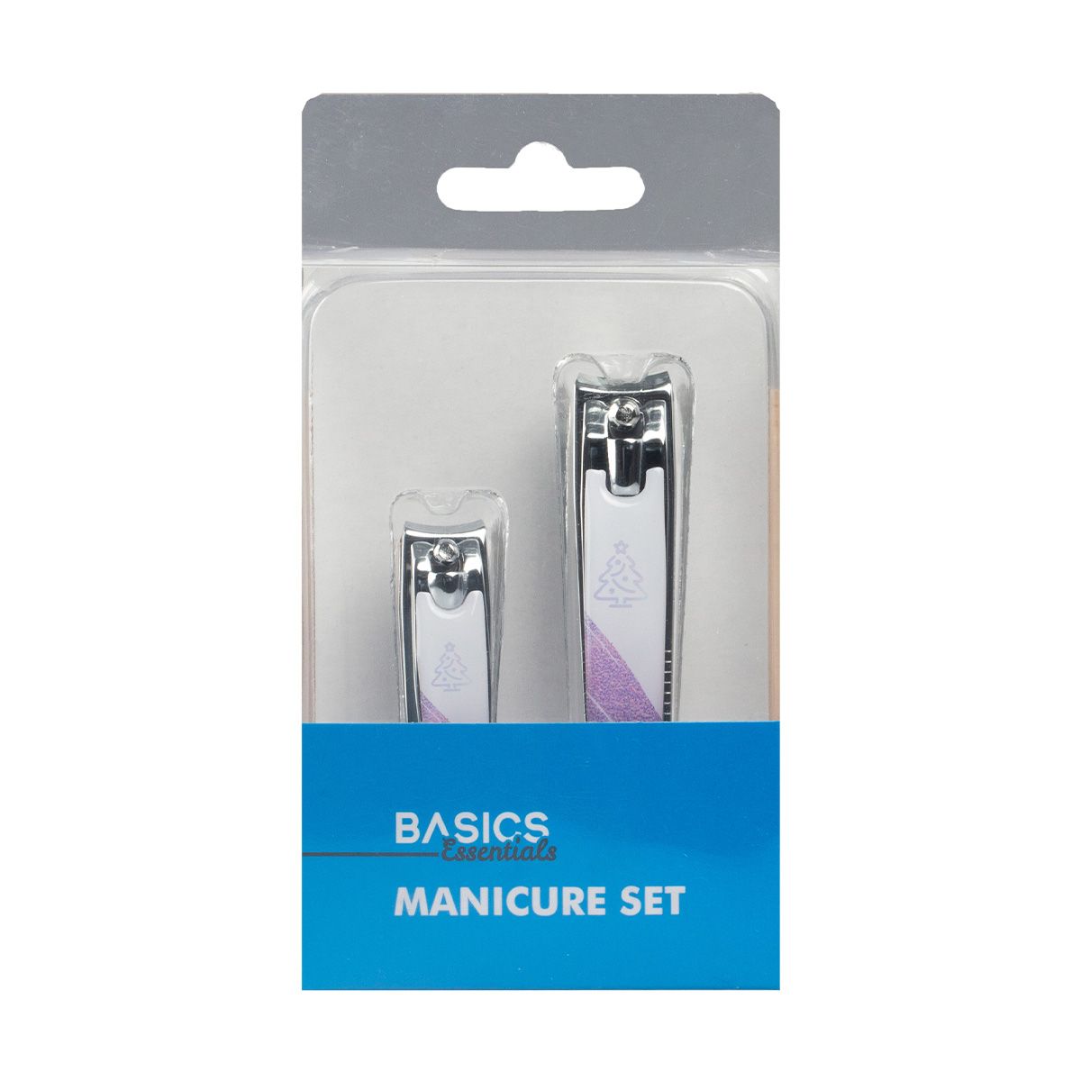 Basics Essentials Nail Clipper Set Carbon Steel + S/s Lilac / Pink Shade 2pcs