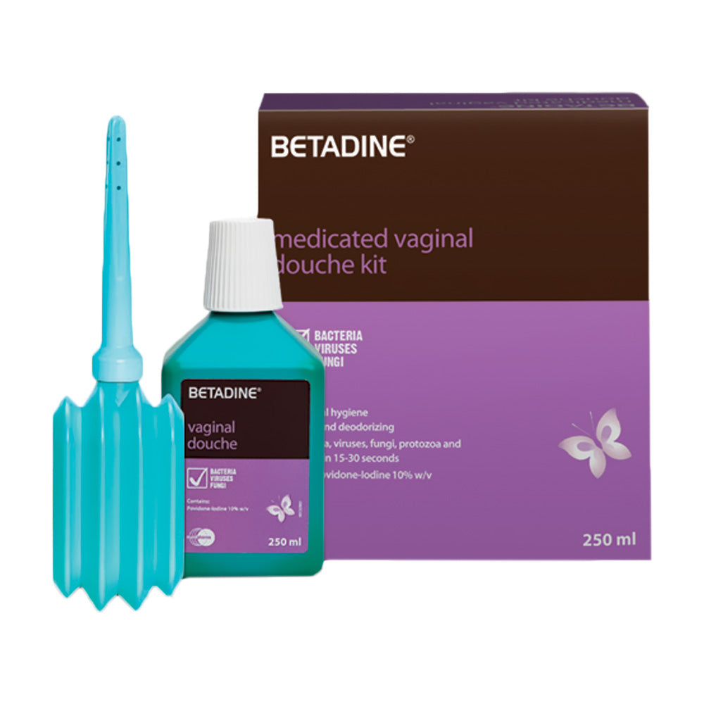 Betadine Medicated Vaginal Douche Kit posses the complete broad spectrum microbicidal activity against all pathogenic organisms which commonly cause: any specific and unspecific vaginitis, all mixed infection; including chlamydia, mycoplasma, herpes, candida albicans and trichomonas vaginalis. Proven effective for symptomatic relief of minor vaginal soreness, irritation and itching.