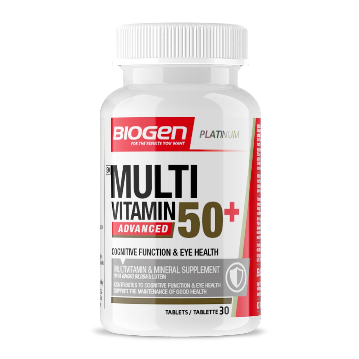 Biogen Multi-Vitamin 50+ Advanced is a multivitamin and mineral supplement with Ginkgo Biloba and Lutein. Contributes to the normal functioning of the heart & regulation of hormonal activity. Contains antioxidants for the maintenance of eye health & cognitive function. Contributes to normal mental health and enhances memory in adults. For the maintenance of good health & immunity.