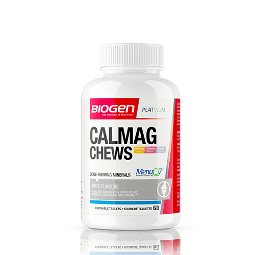 Calcium is the most abundant mineral in your body and forms the basic structure of your bones and teeth. Just one tablet a day of Biogen Calmag Chews basically provides 50% of the recommended daily amount of calcium in a bio-available form, with added vitamin D to maximise absorption. Nutrients in this formulation therefore help maintain healthy bones and teeth.