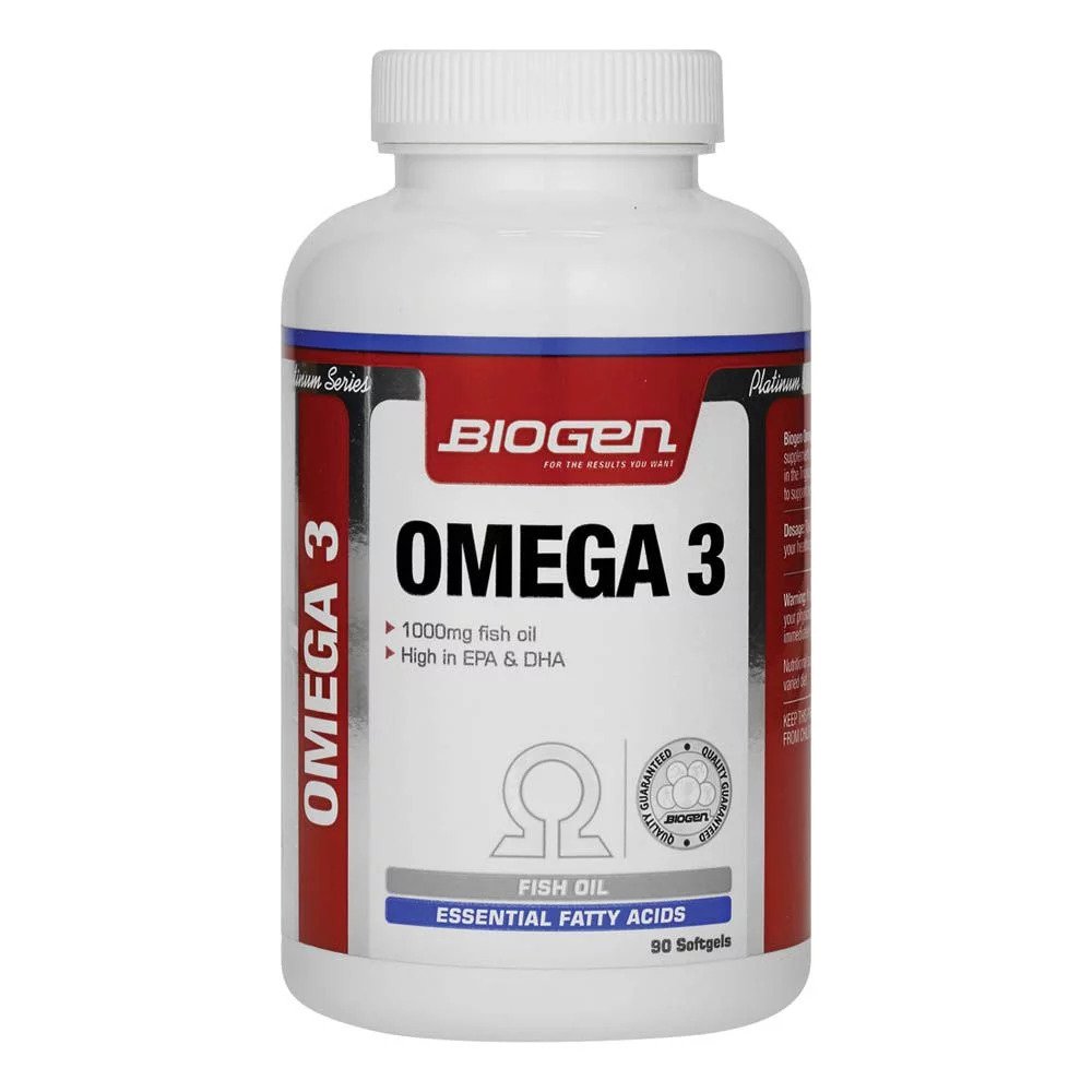 1000mg fish oil. High in EPA & DHA. Biogen Omega 3 is a high potency essential fatty acid supplement consisting of an 18:12 ratio of EPA and DHA in the Triglyceride (TG) form. These are fatty acids known to support heart, nervous system and eye health.