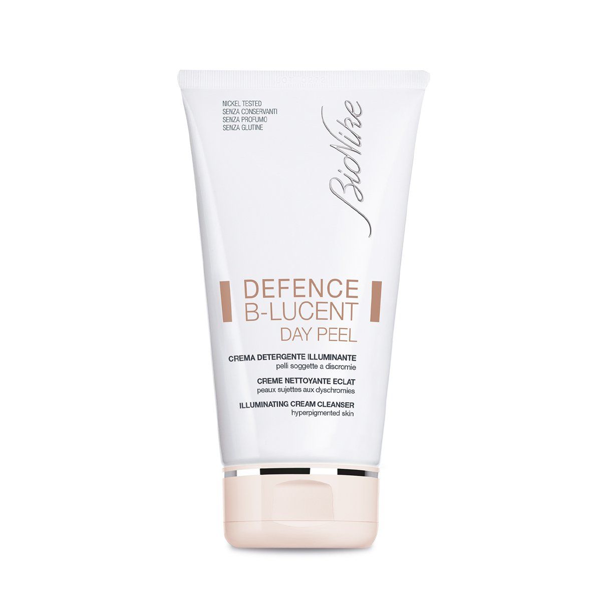 Bionike defence b-lucent day peel: Creamy rinse-off cleanser that removes impurities from the skin and, thanks to a delicate exfoliating effect, gives the face immediate freshness and brightness. Used every day and combined with the other products of the Defense B-Lucent line, it reduces discolouration and evens out the complexion.