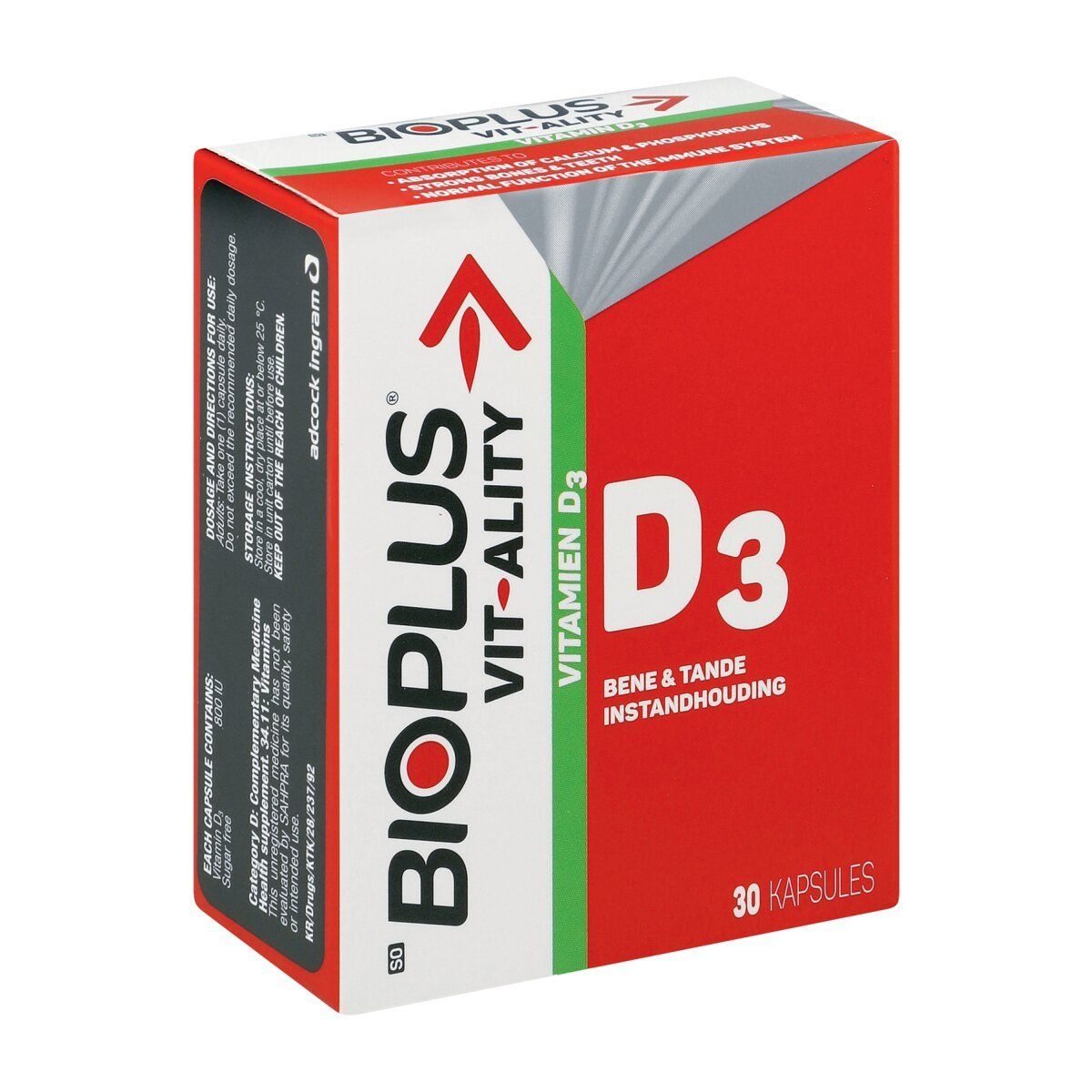Bioplus vit-ality vitamin D3 is a health supplement that promotes the normal functioning of the immune system. It contains magnesium that contributes to the absorption of calcium and phosphorous, and helps in building stronger bones and teeth. Each capsule contains vitamin D3. This supplement is completely sugar free. The pack consists of 30 capsules.