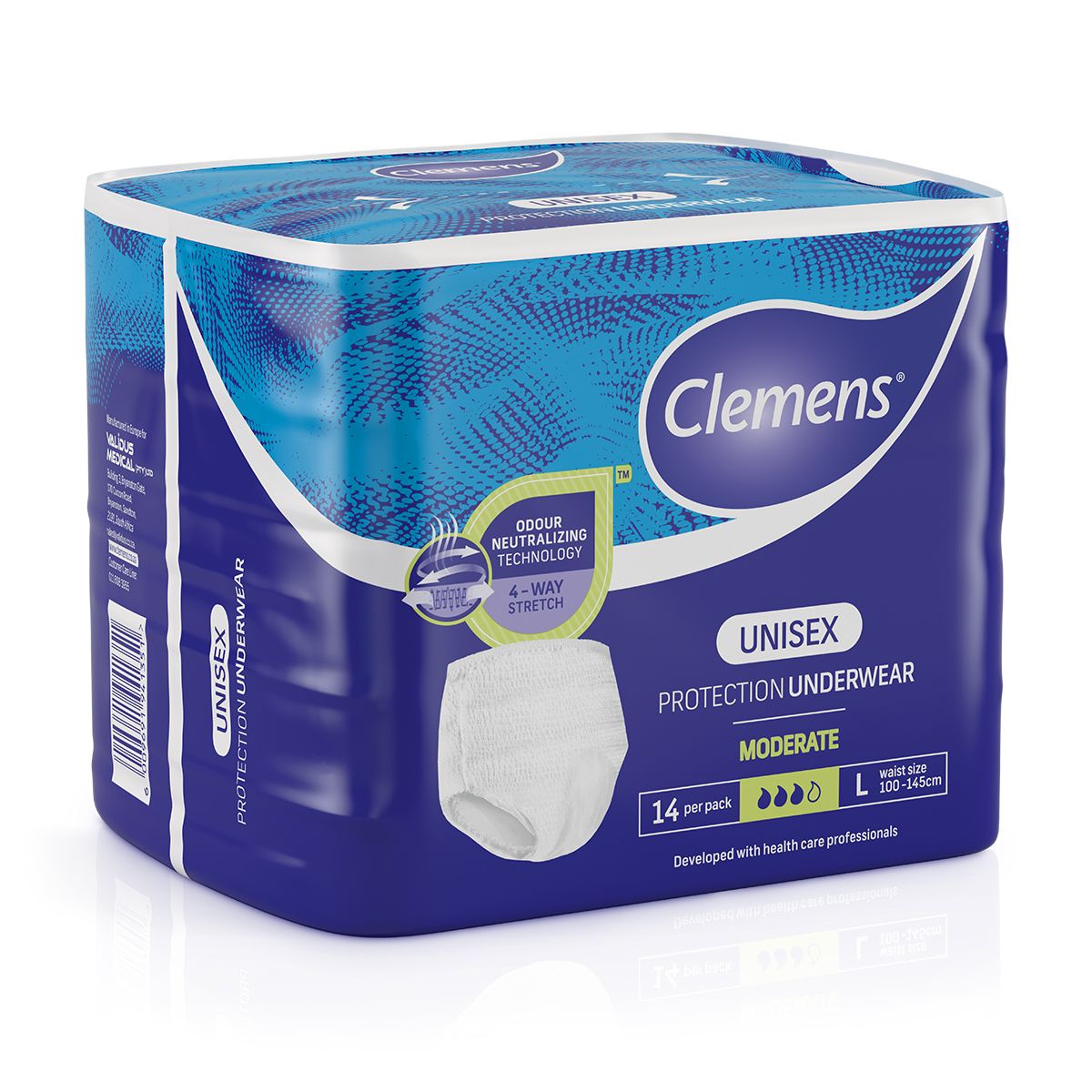 Clemens Protective underwear is designed to be worn like regular underwear, providing maximum protection for security and comfort. The protective underwear offers up to 10 hours of odour control, and has tearable side seams for easy removal.