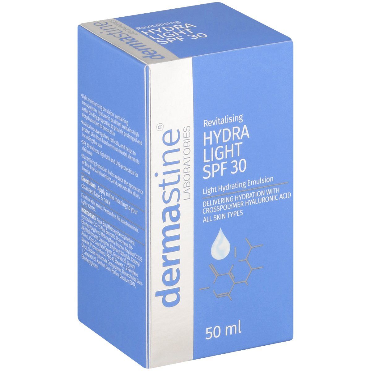 Dermastine revatilising hydra light emulsion SPF30 50ml is a light moisturising emulsion, that contains high water binding properties to provide prolonged and deep hydration to boost skin. This emulsion helps to reduce the appearance of fine lines and wrinkles and protects the skin's barrier. Also assists to scavenge free radicals and helps to protect skin from harsh environmental elements including the sun.