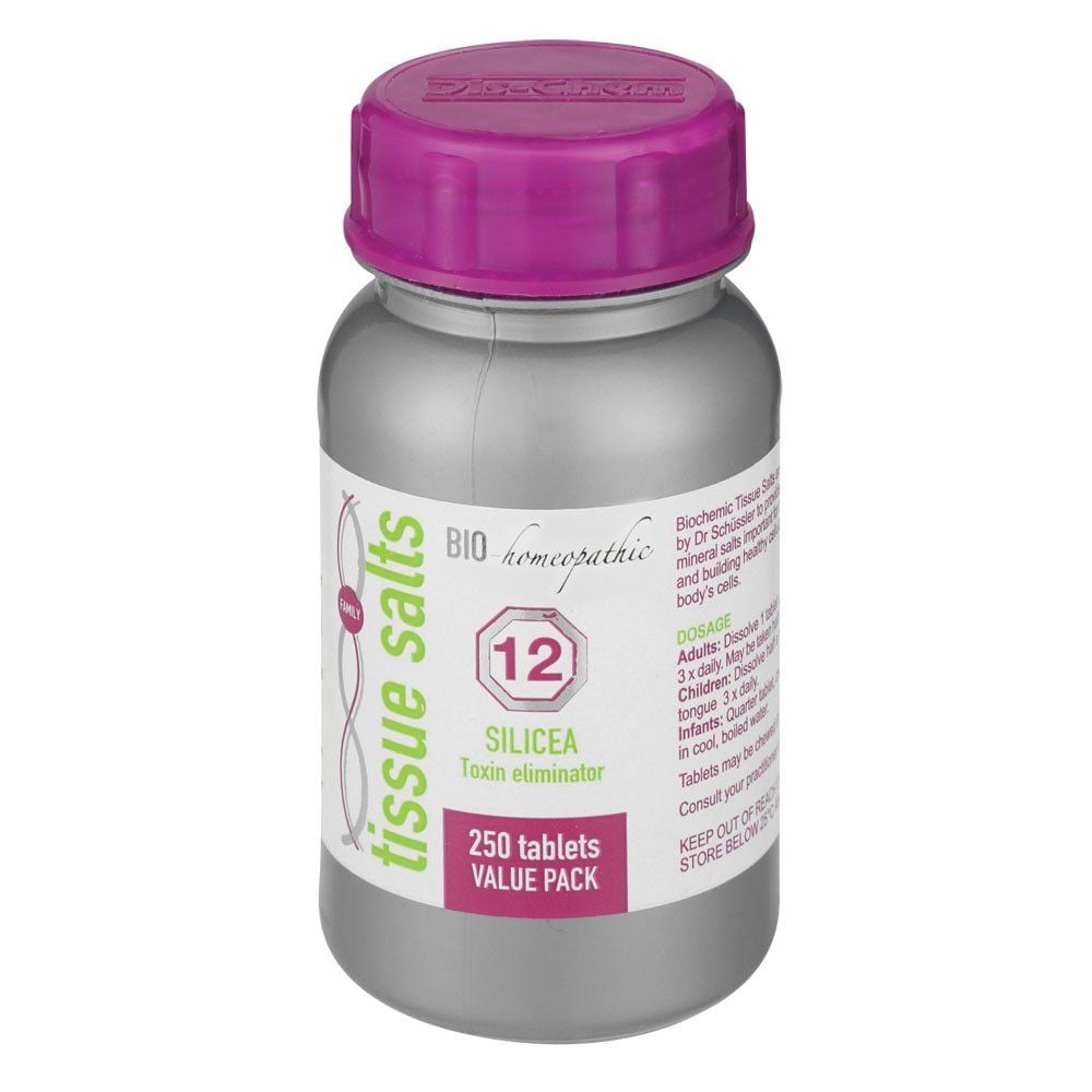 The 12 main tissue salts used in homeopathic medicine are claimed to treat a variety of health conditions, from inflammation to metabolism imbalances. Dischem tissue salt silicea tablets are available in a pack size of 250 tablets. These tissue salt tablets help in building healthy body cells and helps to build immunity.