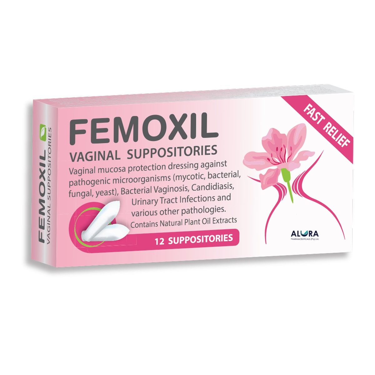 Femoxil Vaginal Suppositories assists women with a broad spectrum of vaginal infections. Femoxil is specifically designed to bring fast and soothing relief from vaginal pain and discomfort such as itching, burning, irritation, redness or soreness, pain, swelling and dryness. The suppository dissolves easily and helps to balance the vaginal environment and natural flora at an optimal pH range of 4-4.5.