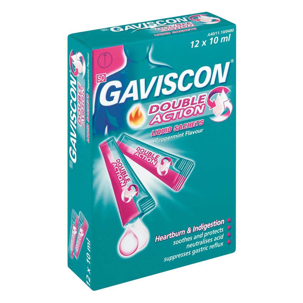 Gaviscon Double Action sachets are liquid medicine that can help to ease indigestion, heartburn, and acid reflux. If you suffer from indigestion and heartburn after you eat or drink, just one or two of these sachets will be all you need to ease your symptoms after a meal and before bed. With a delicious peppermint flavour, you can take Gaviscon sachets with you anywhere for fast indigestion relief on the go.