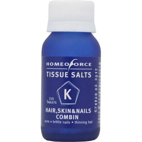 HOMEOFORCE TISSUE SALTS K HAIR, SKIN & NAILS COMBIN is indicated for problem skin, brittle nails and thinning hair.
