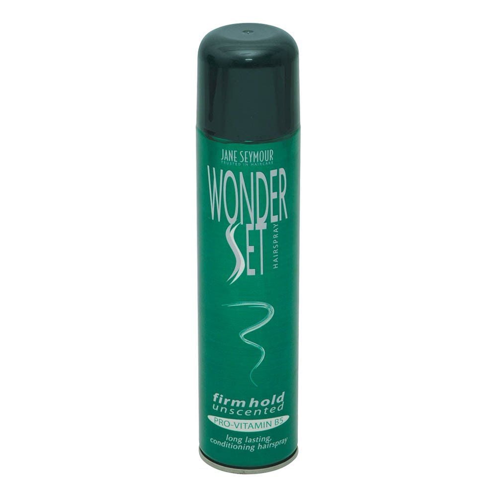 Jane Seymour Wonder Set Hairspray Firm Hold Unscented 300ml provides all the hold you need while moisturising your hair with the help of pro vitamin B5. Its advanced formulation won't cause stickiness, excess build up or flaking. Jane Seymour Wonder Set is a range of hair styling sprays from one of the worlds leading haircare authorities. Wonder Set unscented firm hold enhances your hairstyle with an extra firm, fragrance free hold that lasts all day long. With the assistance of Pro Vitamin B5, Wonder Set provides superior moisture control that helps condition the hair, preventing hair from becoming dry and brittle, leaving it manageable, soft, shiny and full of bounce even in humid conditions.