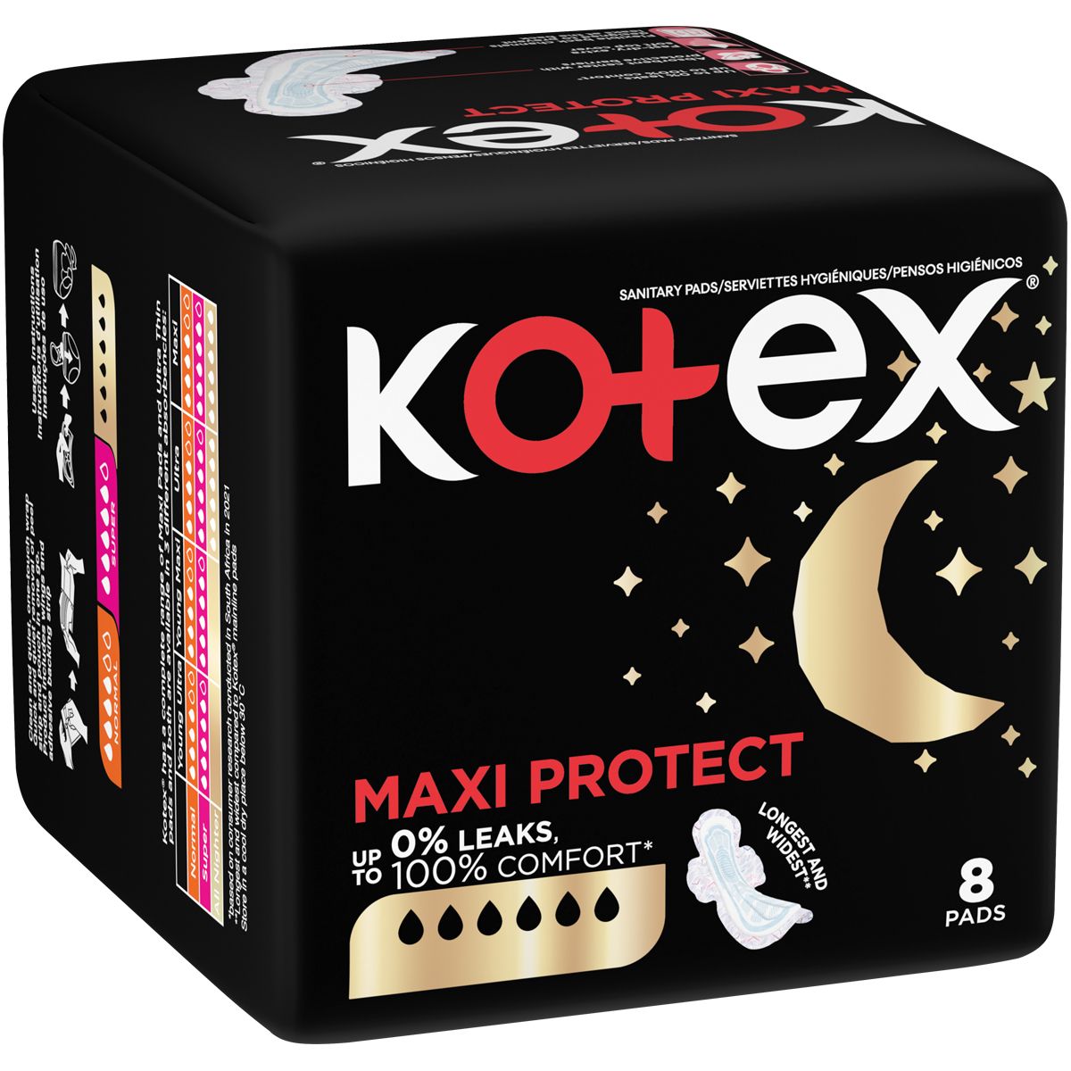 Kotex All Nighter Longest Widest 8 Maxi Pads offer the longest and widest pads of all Kotex varieties plus 3 in 1 protection, comfort and fit. Wings keep the pad in place for all-night comfort.