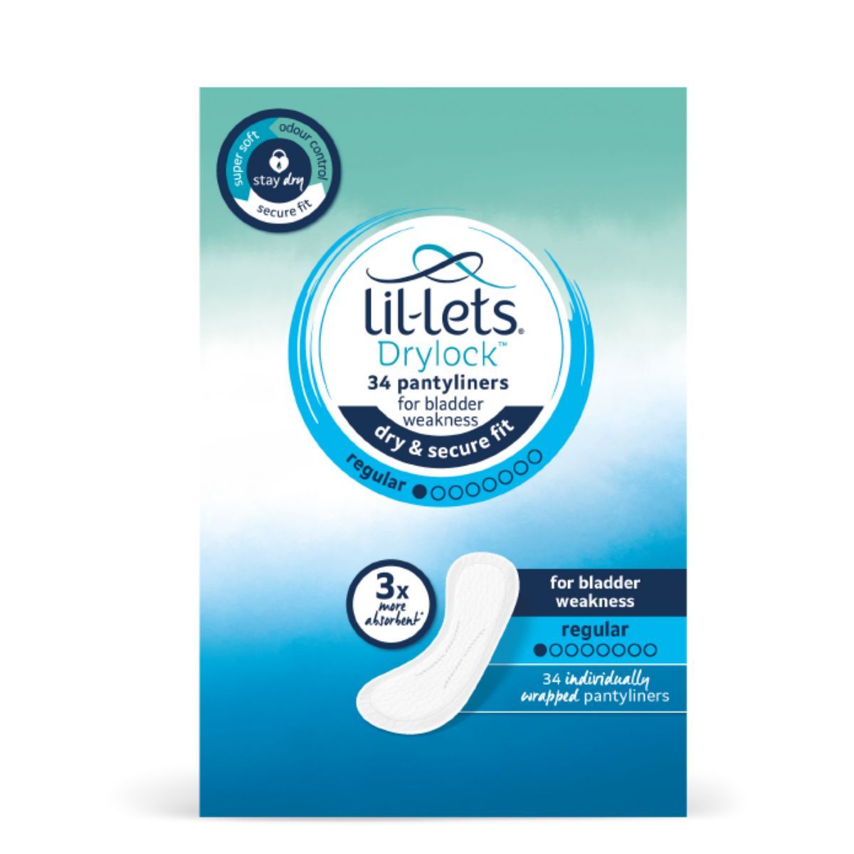 Lil-lets drylock incontinence pantyliners are made for a little extra protection during light bladder leakage, including drips and dribbles. Feel comfortable, dry and fresh throughout your day with the use of these liners. With the drylock technology, ultra slim design, and super soft cover, lil-lets regular drylock pantyliners for incontinence are the way to go.
