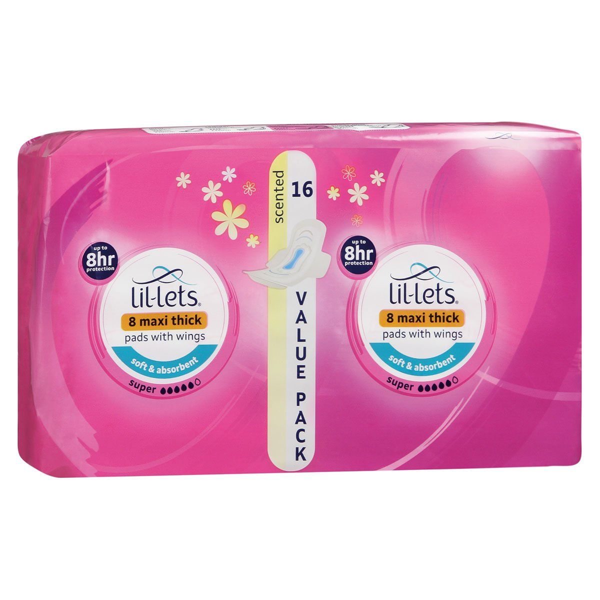Lil-lets maxi thick super scented pads are made for medium to heavy flow and provide a cotton-soft feeling while removing moisture from the surface, leaving you dry and protected for up to 8 hours. Designed by women, for women, to suit your every need.