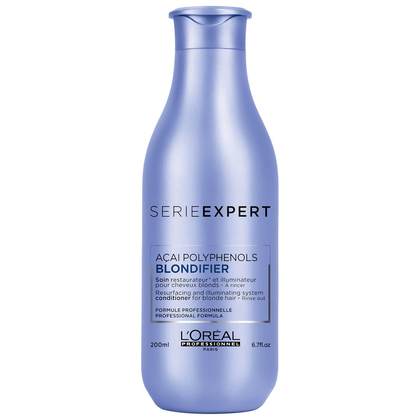 Create soft, shiny locks with L'Oréal Professionnel Blondifier Conditioner, a nourishing treatment for blonde hair. Working to resurface each strand from root to tip, the formula uses Acai Berry Extract with Polyphenols to restore brightness and vibrancy whilst gently detangling for a smooth, sleek finish.