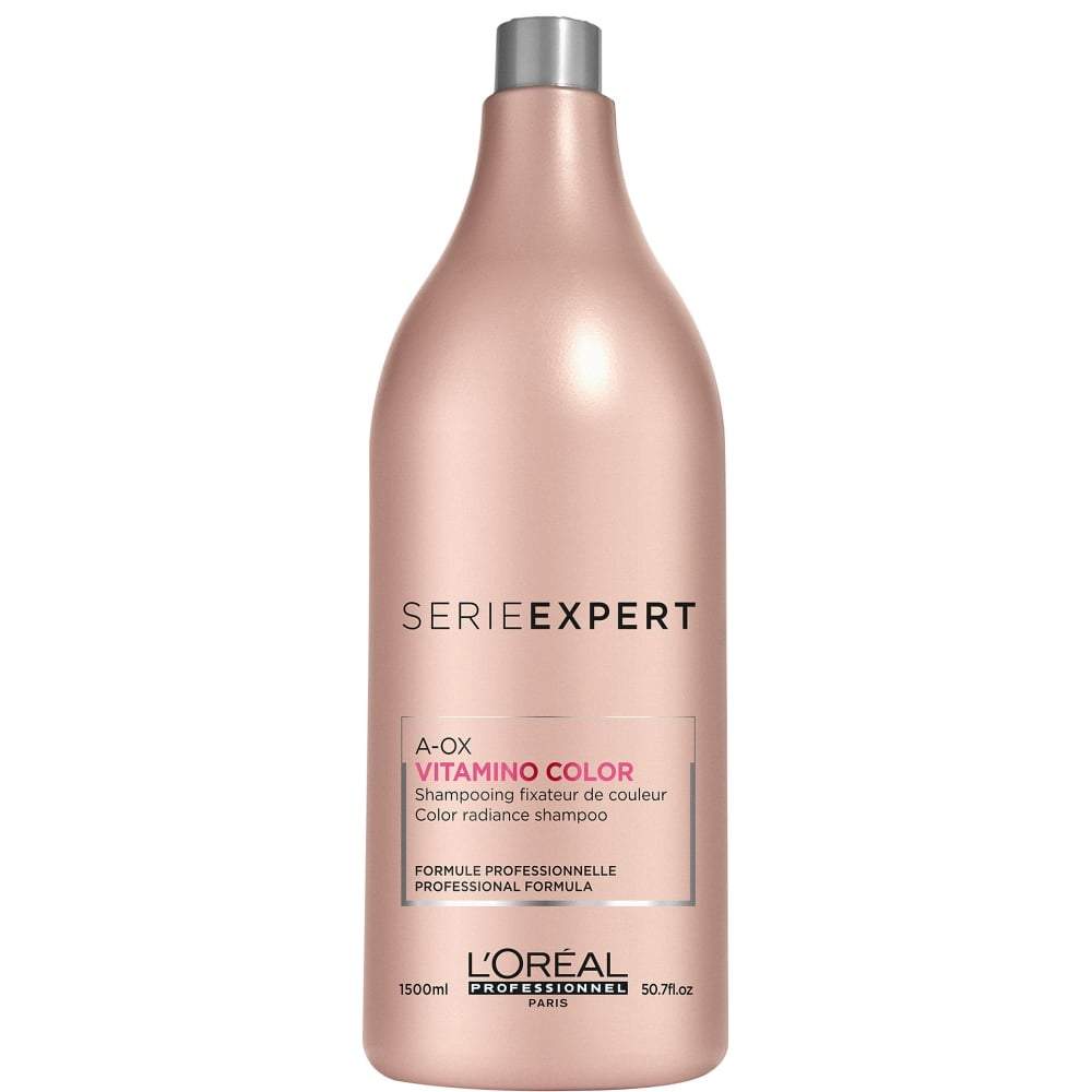 Shade insurance starts with this creamy-light L’Oreal Professionnel Serie Expert Vitamino A.OX Color Shampoo. Gently removes residue, but not your colour. This protective shampoo helps your hair stay vibrant longer. Specifically designed for coloured hair, L’Oreal Professionnel Serie Expert Vitamino A.OX Color Shampoo uses Incell Hydro-Resist a double-locking technology to prolong colour radiance intensity with a lightweight film that repels water, helps to protect colour and enhance shine.