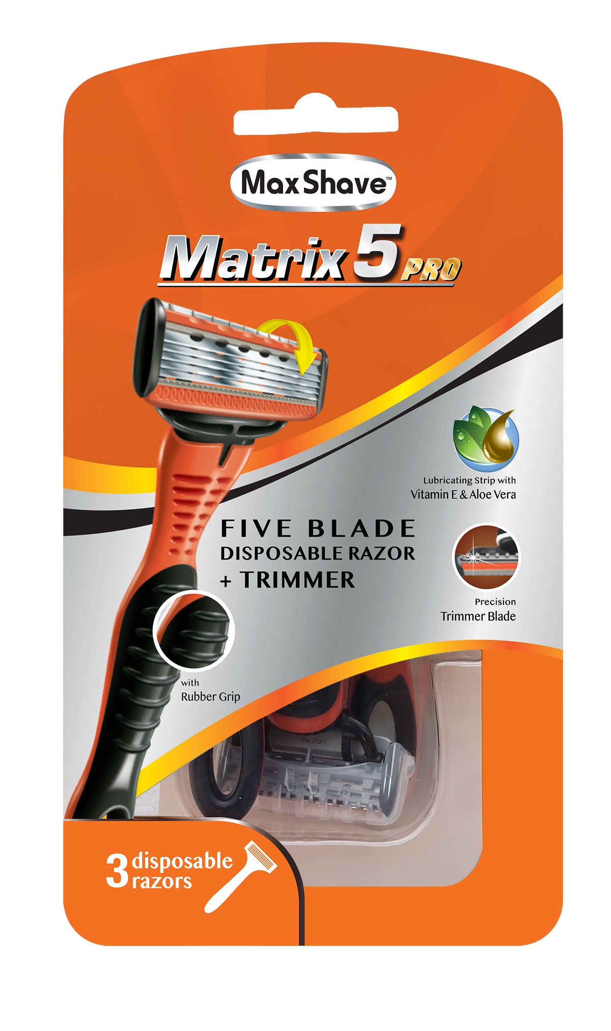 Max shave ultimate 3 Men's disposable razors puts you in control of your morning shave. The ergonomically designed handle offers absolute control, while the pivoting triple blades with a guard bar and aloe and vitamin E effortlessly glide along the contours of the face - for a closer, smoother shave.