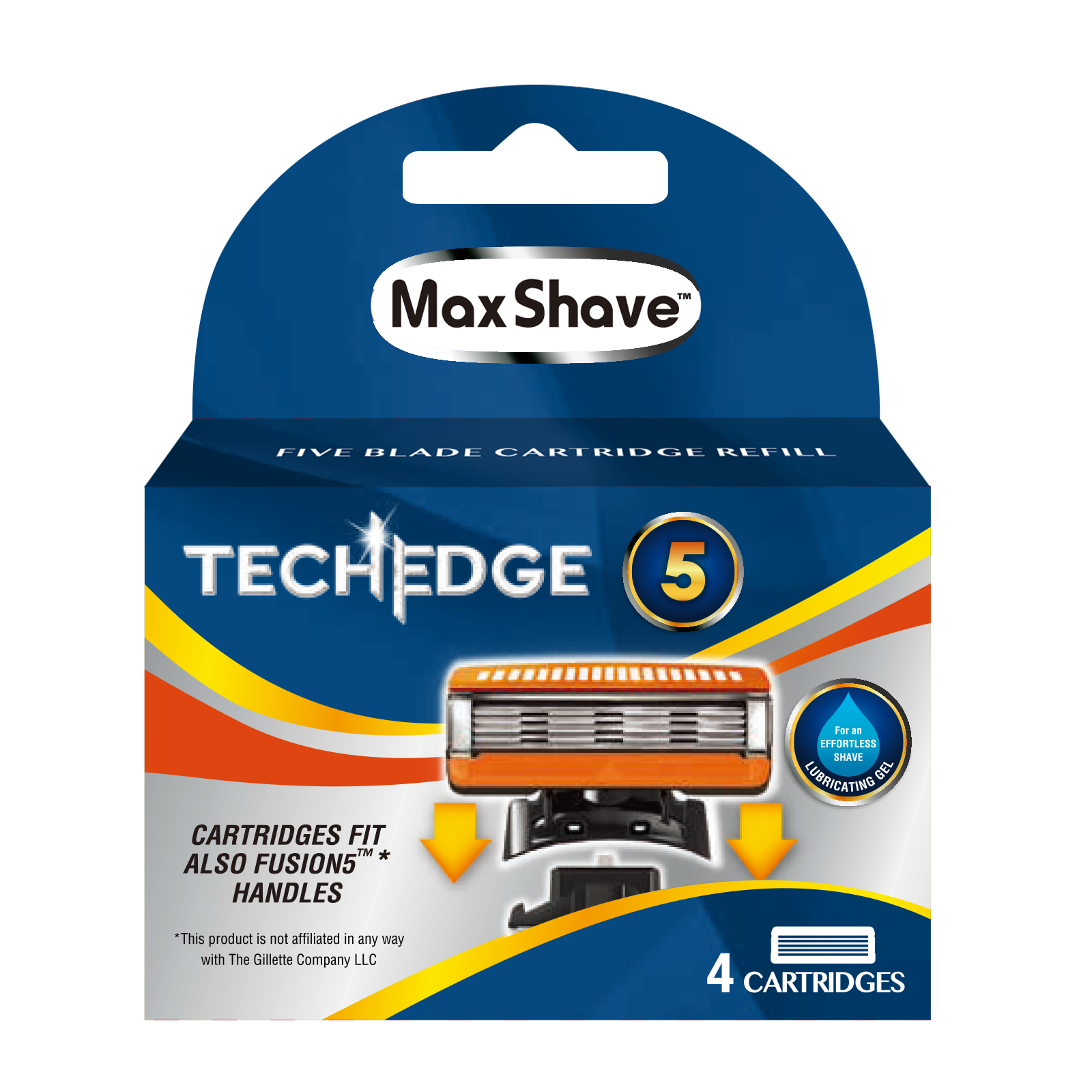 Max shave 5 blade system can be fitted to max shave tech edge razor handles for a smooth, irritation-free shave. The skin protection system is supported by a lubricating gel that contains vitamin E, for smooth gliding. Together with a pivoting head and anti-clog cartridge, you are guaranteed a sleek shave without nicks and the hassle of constant rinsing.