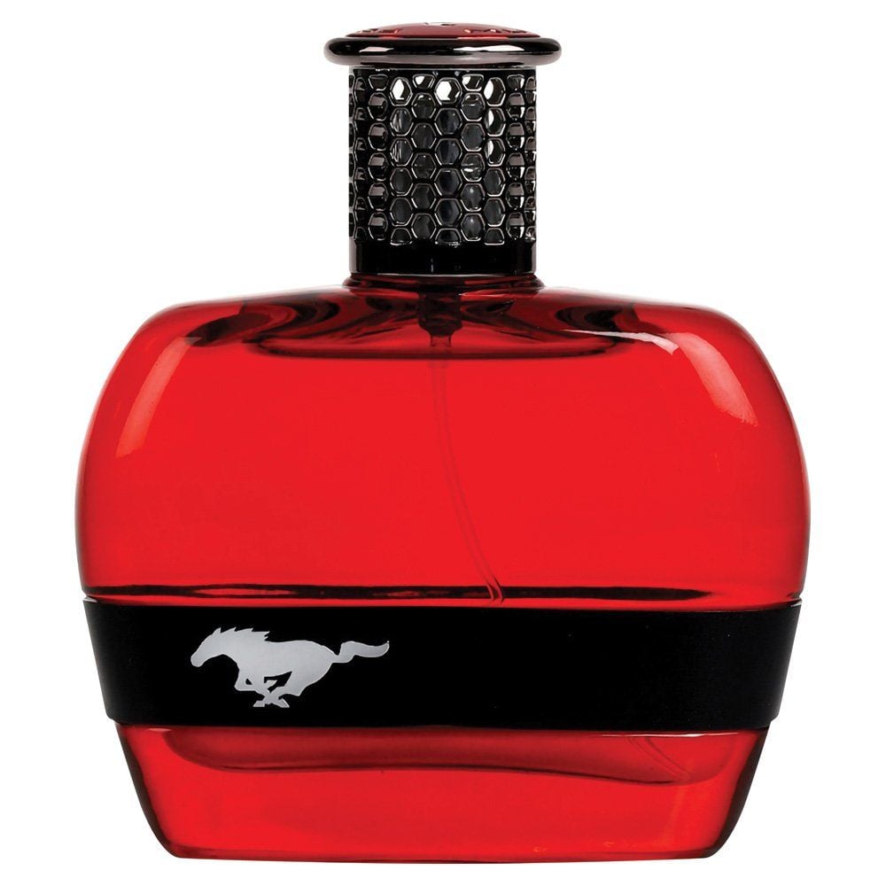 The Ford Mustang fragrance notes explosion of refreshing and energizing flavors Bust of fresh mint and Grapefruit opens up into Lavender Tarragon and Galbanum Official Ford Mustang Fragrance bottle design is glossy saturated red glass The silhouette of the bottle emulates the curves and symmetry of the front grill The cap captures the honeycomb execution which is associated with power and performance of the iconic mustang