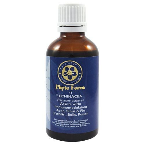 Echinacea is an anti-biotic with anti-viral properties and may assist acne, sinus & flu, cystitis, boils and poison. This is a herbal tincture of the plant echinacea, echinacea purpurea. Phyto force echinacea helps as an immune booster, acne, sinus, cystitis, boils, poison, flu, antibiotic, anti-viral. It comes in a packs size of a 50ml bottle.