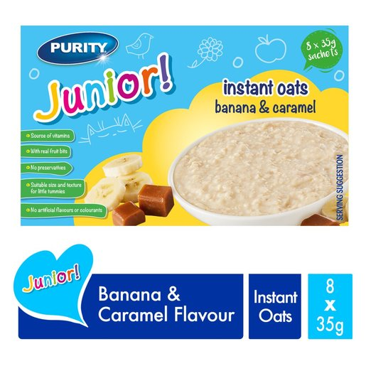 Purity Junior Oats 280 g is a deliciously creamy and nutrient-packed breakfast cereal designed for growing toddlers and young children. Made with wholegrain oats and enriched with essential vitamins and minerals, it provides lasting energy and supports healthy growth and development. Perfect for busy mornings, it’s easy to prepare and gentle on young tummies.