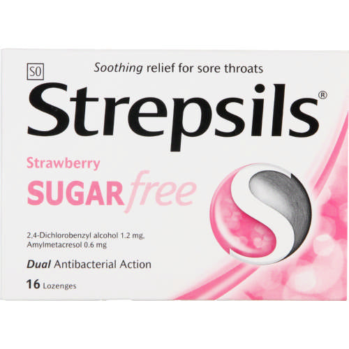 Strepsils Lozenges Stawberry Sugar Free 16's