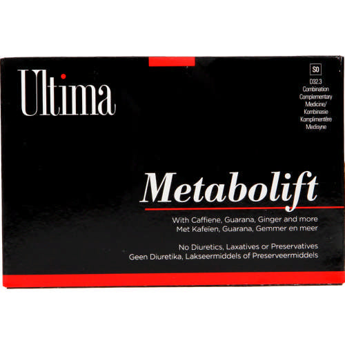 Ultima Metabolift 90 Tablets is made with caffeine, guarana, ginger and other specially selected herbal ingredients to help improve energy and aid with weight maintenance. Contains no diuretics, laxatives or preservatives.