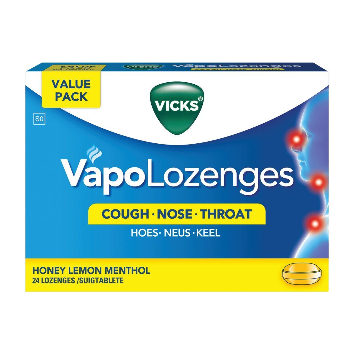 These Vicks VapoLozenges Honey Lemon Flavoured Menthol Lozenges helps soothe sore throats, clears congested noses and relieves coughs.