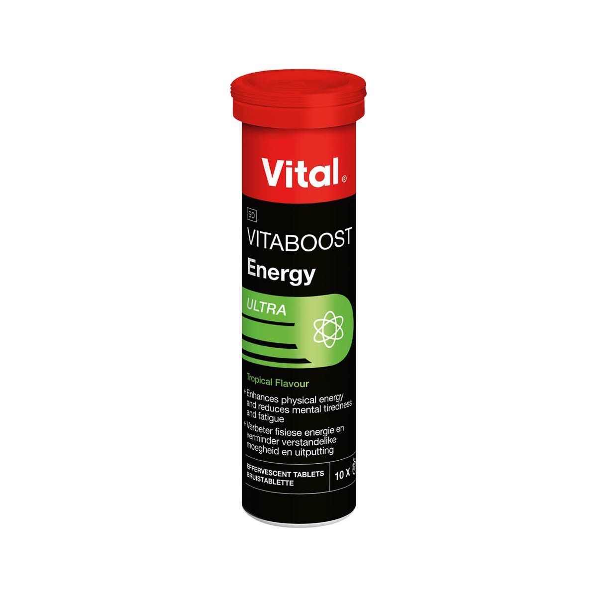 Vital vitaboost energy effervescents 10 tablets contains a range of vitamins and minerals, as well as guarana and caffeine, which boost physical energy and reduce mental fatigue.